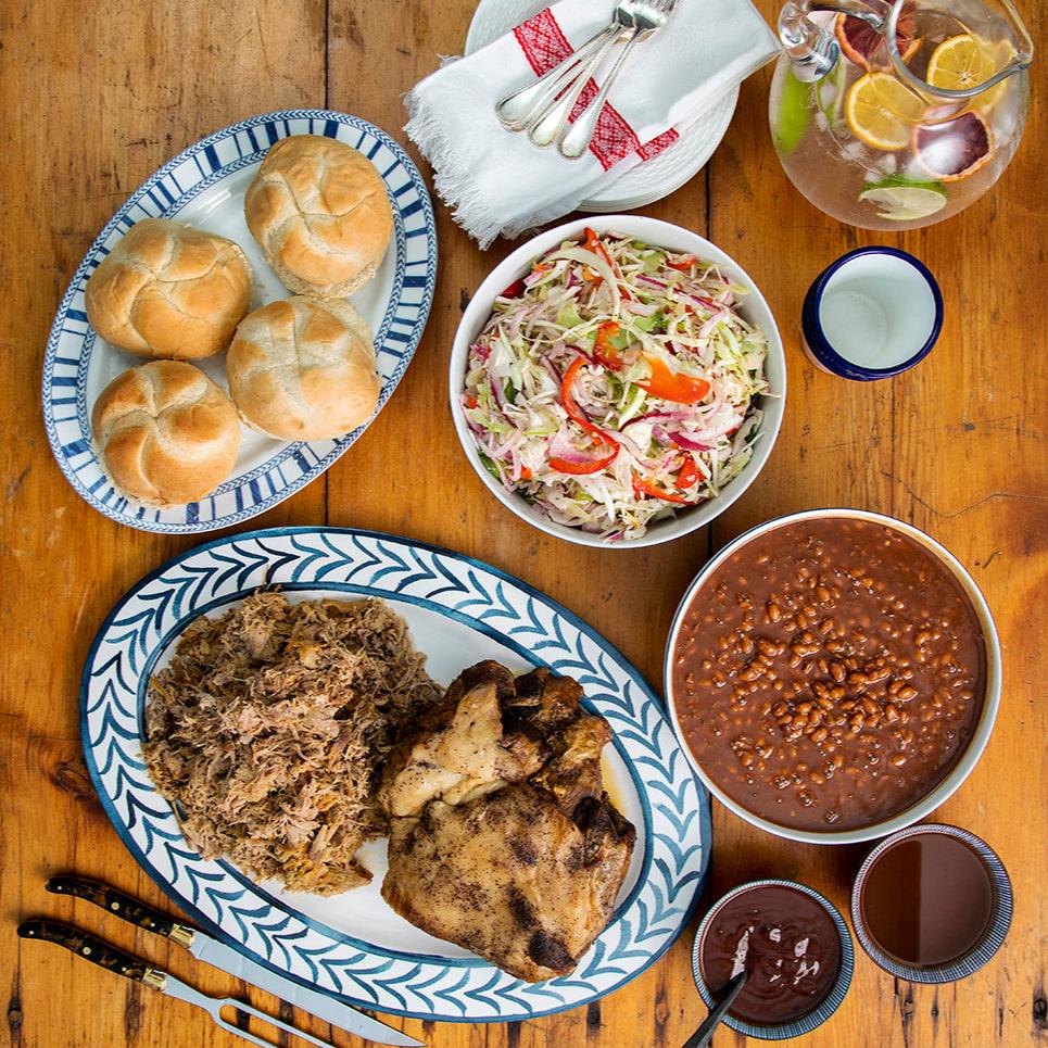 Put a crowd-wowing BBQ spread on in minutes! it’s all here: 2lbs of Barbeque, 3 sauces, baked beans, cole slaw, buns, and cake bites of course. Make any barbecue lover’s dream come true. Kit serves 6-8 and includes: